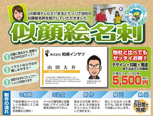 似顔絵名刺については下記の「似顔絵名刺注文フォーム」よりお申し込みください。